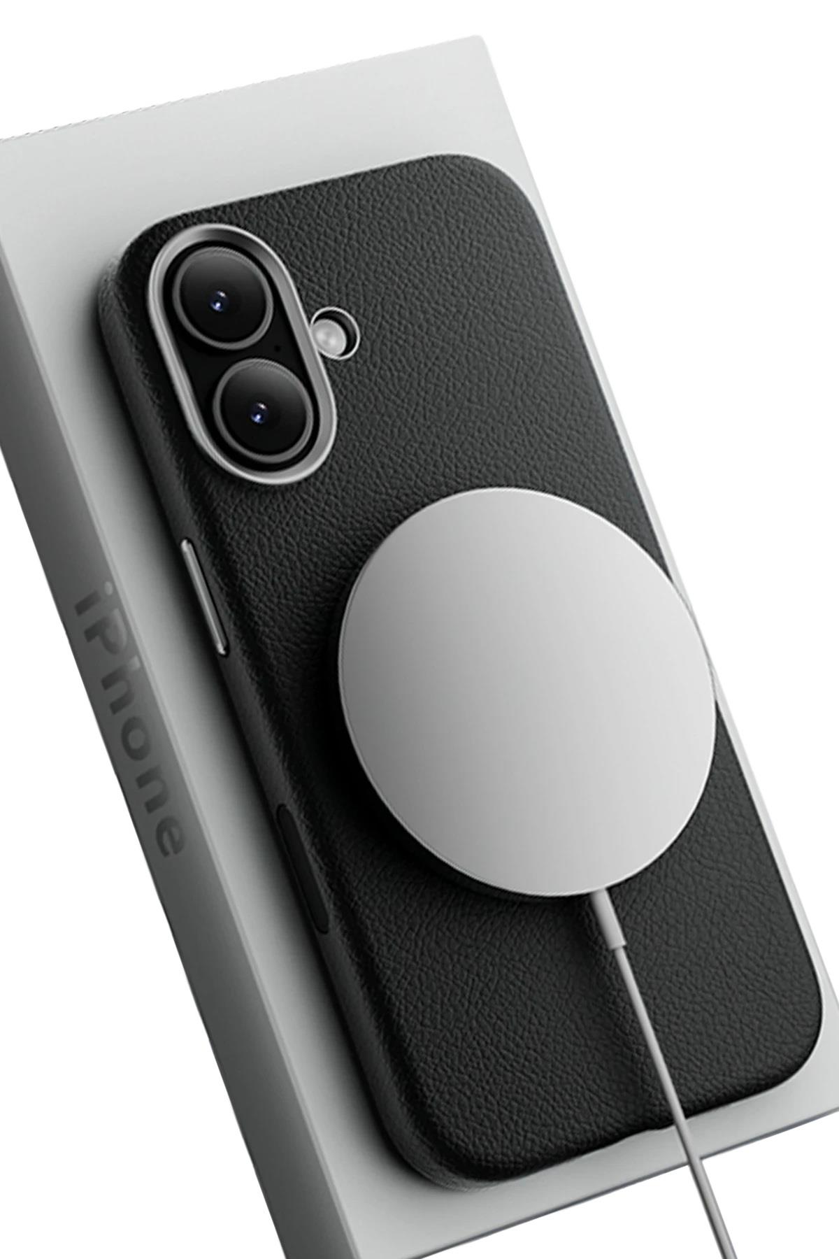 Apple iPhone 17 MagSafe Uyumlu Deri Telefon Kılıfı – Siyah Wonder Seri